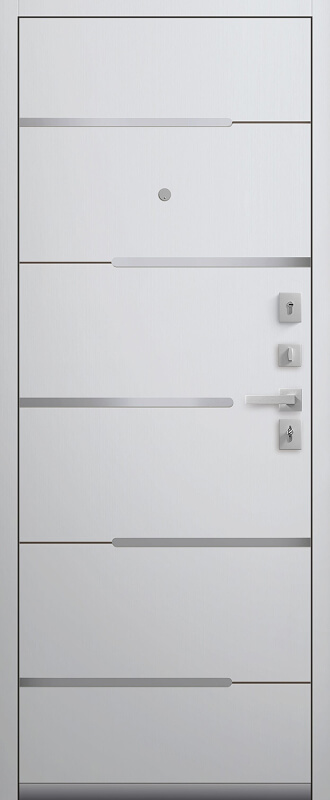 Используем 3 контура уплотнения, совместно с магнитным уплотнителем, обеспечивают максимальный прижим двери и защищают вашу семью от шума и сквозняков. Замки цилиндровые: Sezam 107, Kale 442, надежно защищают помещение, а 3 петли и 2 противосъемных штыря воспрепятствуют вскрытию. Особенностью этой модели являются вставки из нержавеющей стали на внутренней панели, в сочетании с пленкой в цветах белый и базальт. В этой модели сочетаются современные материалы, в актуальных цветах, при этом удобные в уходе и эксплуатации.