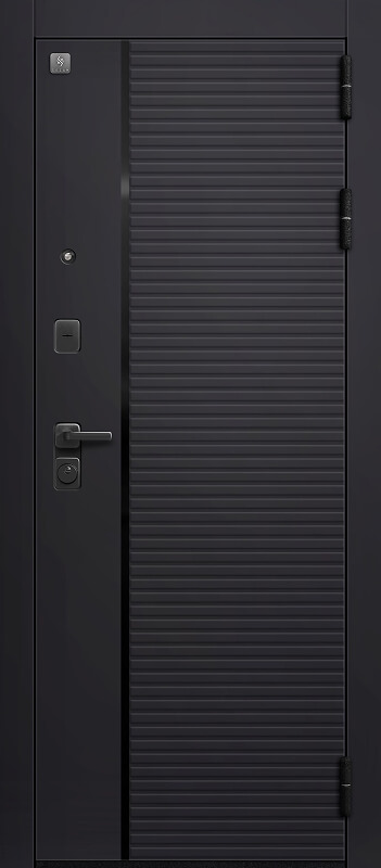 Замки двух типов закрывания — сувальдный Sezam 103 3 класса, и цилиндровый Sezam 102, 4 класса обеспечивают надежную защиту. Также вскрытию воспрепятствуют 3 противосъемных штыря со стороны петель. Цельногнутая конструкция короба делает дверь прочной, безопасной и долговечной. Эта модель имеет дизайнерскую внешнюю панель. Рисунок на МДФ — лаконичный, что позволяет двери вписаться в любой интерьер. При отличных технических характеристиках у нее стильный внешний вид.
