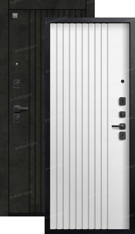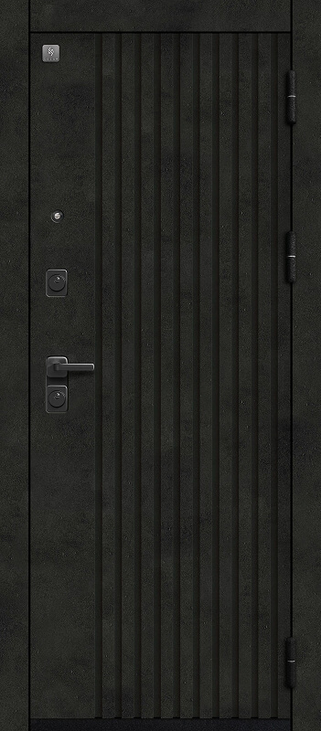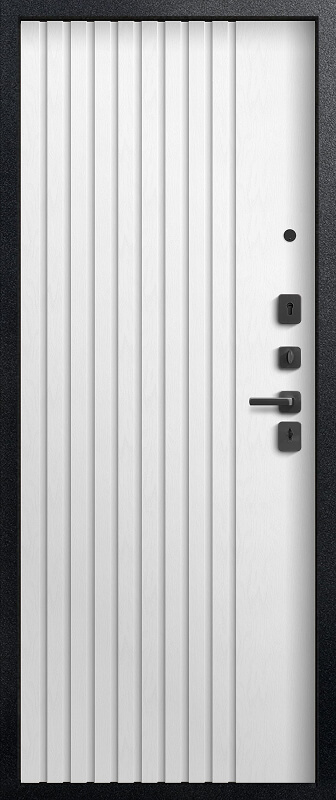 Замки двух типов закрывания — сувальдный Sezam 103 3 класса, и цилиндровый Sezam 102, 4 класса обеспечивают надежную защиту. Также вскрытию воспрепятствуют 3 противосъемных штыря со стороны петель. Цельногнутая конструкция короба делает дверь прочной, безопасной и долговечной. Эта модель имеет дизайнерскую внешнюю панель. Рисунок на МДФ — лаконичный, что позволяет двери вписаться в любой интерьер. При отличных технических характеристиках у нее стильный внешний вид.