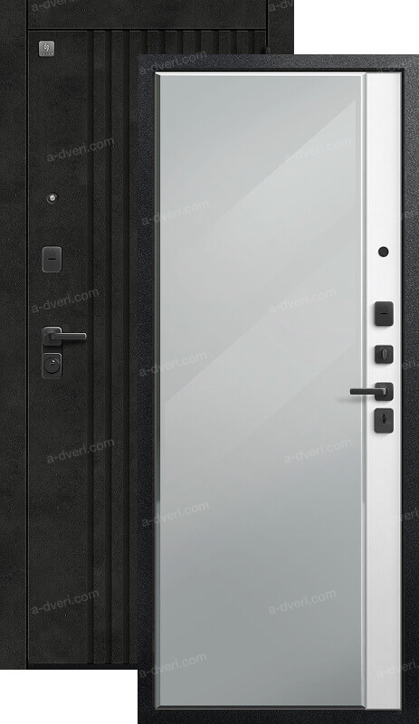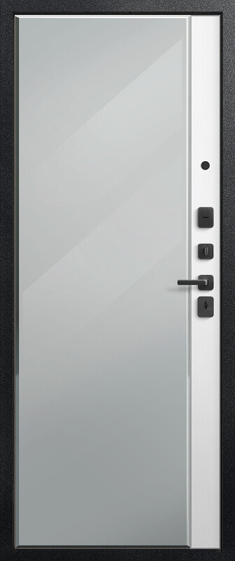 Замки двух типов закрывания — сувальдный Sezam 103 3 класса, и цилиндровый Sezam 102, 4 класса обеспечивают надежную защиту. Также вскрытию воспрепятствуют 3 противосъемных штыря со стороны петель. Цельногнутая конструкция короба делает дверь прочной, безопасной и долговечной. Эта модель имеет дизайнерскую внешнюю панель. Рисунок на МДФ — лаконичный, что позволяет двери вписаться в любой интерьер. При отличных технических характеристиках у нее стильный внешний вид.