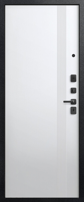 Замки двух типов закрывания — сувальдный Sezam 103 3 класса, и цилиндровый Sezam 102, 4 класса обеспечивают надежную защиту. Также вскрытию воспрепятствуют 3 противосъемных штыря со стороны петель. Цельногнутая конструкция короба делает дверь прочной, безопасной и долговечной. Эта модель имеет дизайнерскую внешнюю панель. Рисунок на МДФ — лаконичный, что позволяет двери вписаться в любой интерьер. При отличных технических характеристиках у нее стильный внешний вид.