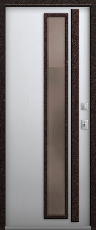 Внутренняя панель МДФ выполнена в двух цветах — кашемир белый и кашемир грей. Стекло цвета Bronze с низкоэмиссионным энергосберегающим покрытием, сохраняет тепло внутри дома и практически исключает теплопотери. Дверь Т-14 отлично впишется в любой интерьер и защит ваш дом от холода.