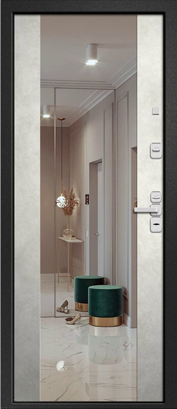 - Внутренняя отделка МДФ толщиной 16 мм с фрезерованным рисунком, декоративная вставка «Зеркало»